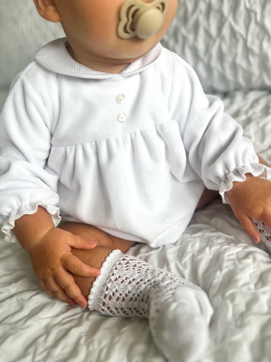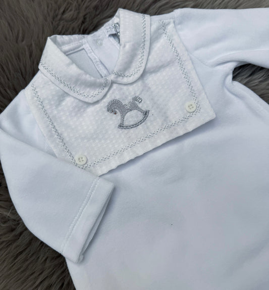 White velour rocking horse romper