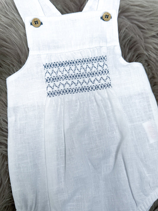 White & Navy Linen Romper