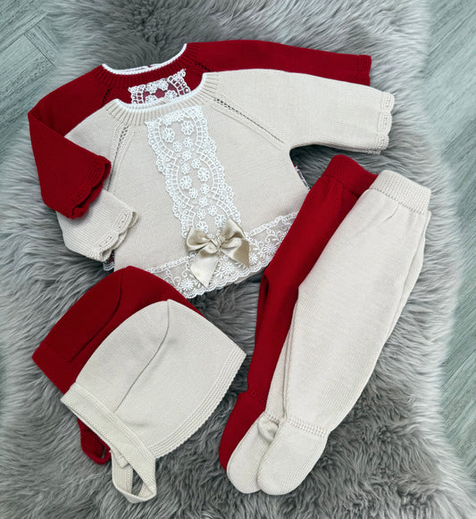 Beige Lace 2 Piece Including Bonnet