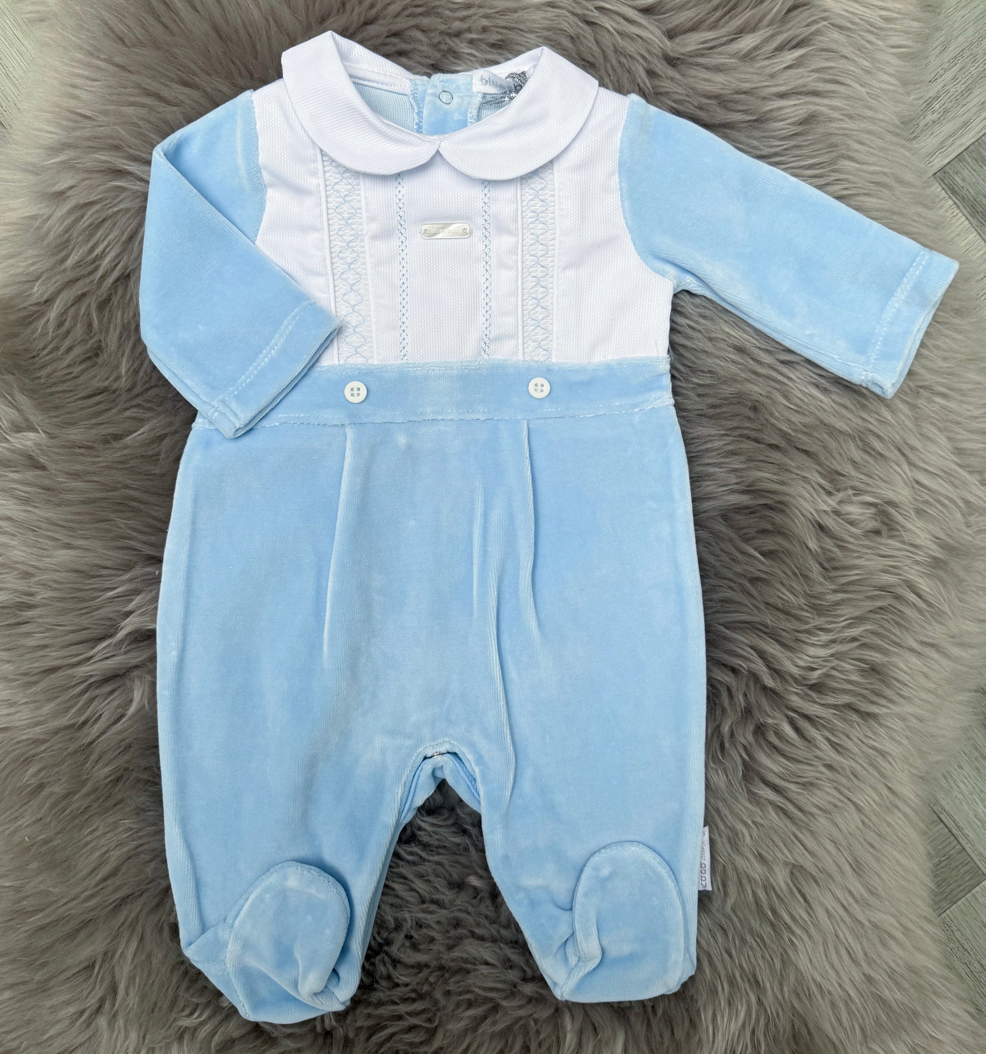 Blue Velour Cross Stitch Babygrow