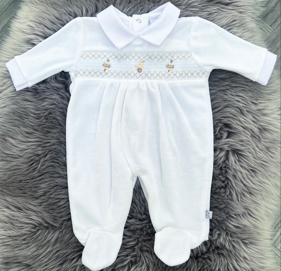 Velour White Rattle Babygrow