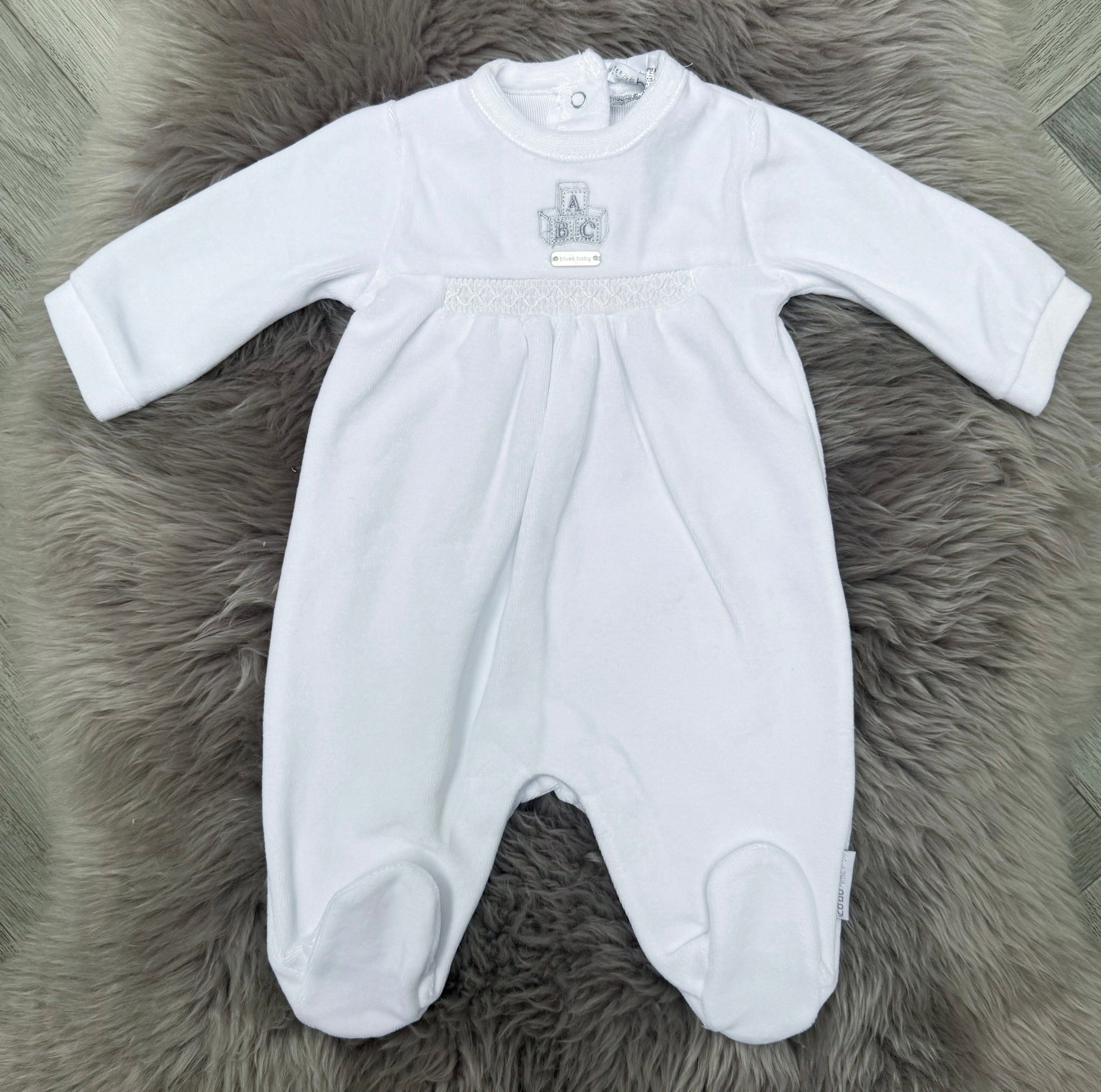 White Velour ABC Babygrow
